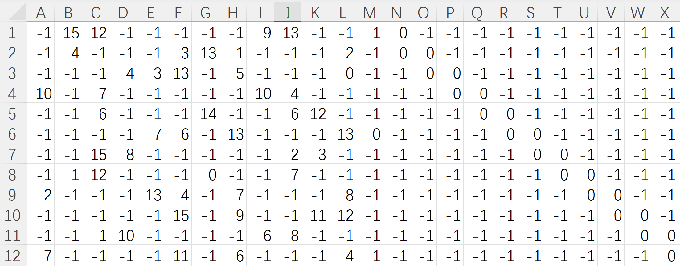 对于符合准循环特性的LDPC码,其校验矩阵除了使用完整校验矩阵的形式以外,还可以采用准循环矩阵+提升值的形式来表征:(384,192)码型的准循环矩阵为12行、24列的矩阵、提升值为16。即12行、24列的准循环矩阵中每一个元素表示的是一个维度为16的方阵子矩阵:-1代表代表维度为16的全0子矩阵,0代表维度为16的单位子矩阵,其他数值x代表对维度为16的单位子矩阵循环右移x次 。