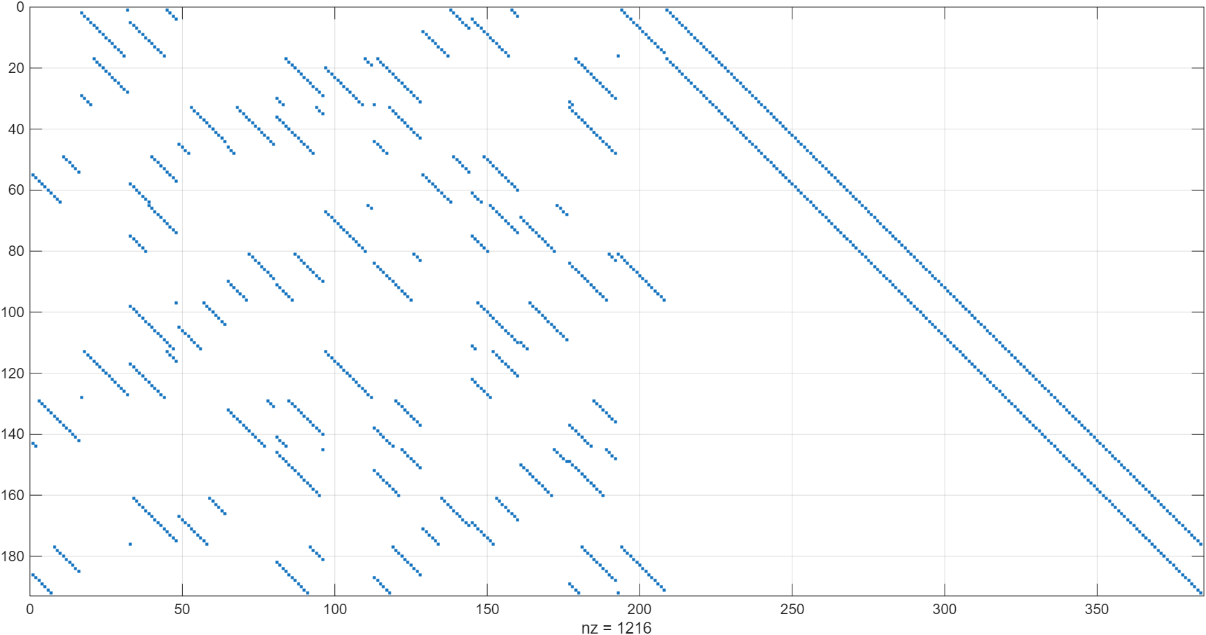 ①说明:完整校验矩阵为(384-192)=192行、384列的矩阵,代表信息比特192比特、码字比特384比特、校验比特192比特。其元素仅由0,1两种数值构成,其中第i行、第j列的元素1代表第j个码字比特参与第i个校验矩阵的校验。